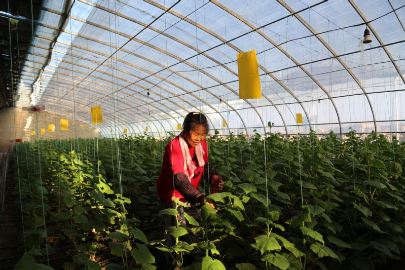 走進崗埠富民農(nóng)業(yè)科技園32號溫室大棚,滿眼盡是綠意,一排排整齊的秧苗長勢旺盛,如青玉般細嫩的小黃瓜在翠綠的葉片襯托下,身著綠裝,格外誘人。連日來,園區(qū)加強精細化管理,從消毒、栽種、水肥運籌等流程上嚴格作業(yè),確保水果黃瓜果型優(yōu)良、綠色生態(tài)。圖為工人正在進行“蘸花”作業(yè)。