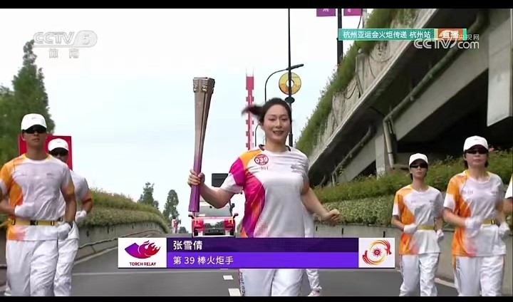 9月20日上午,杭州第19屆亞洲運動會火炬?zhèn)鬟f杭州站起跑儀式在杭州城市陽臺舉行。前國家隊擊劍運動員,江心沙農(nóng)場職工子女張雪倩作為39棒火炬手傳遞亞運精神。