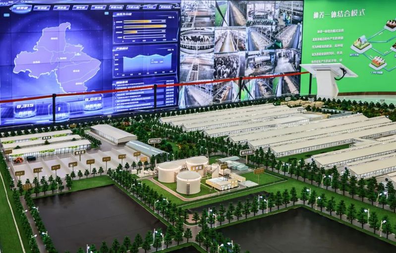 生態(tài)化發(fā)展加速轉型。牧場智慧生態(tài)系統(tǒng)的污水循環(huán)管理設備包含牧場污水管路3D圖與污水監(jiān)測點位信息,實時監(jiān)測牧場污水指標,并將數(shù)據(jù)同步上傳至環(huán)保部門,確保牧場水質監(jiān)管到位。沼氣發(fā)電系統(tǒng)將標準化工藝處理糞污產(chǎn)生的沼氣用于發(fā)電,沼液利用后的沼渣作為牛床墊料的生產(chǎn)原料,不僅成本低,還有效降低了養(yǎng)殖風險。同時在場區(qū)配備廢氣檢測設備監(jiān)測養(yǎng)殖氣體環(huán)境,配備消防監(jiān)控設備監(jiān)測飼草區(qū)與沼氣發(fā)電區(qū)域煙火狀況。智能生態(tài)系統(tǒng)采取糞污固體發(fā)酵、沼氣烘干回床、沼液還田方式,實現(xiàn)“變廢為寶”。對牧場糞污發(fā)酵后的液位進行采集,經(jīng)過無害化處理后的沼液通過預設專用管道,在卷盤式噴灌機的運轉下自動噴灑在專屬消納用地的田間作物上,形成種養(yǎng)一體循環(huán),有效提高了糞污綜合利用水平。