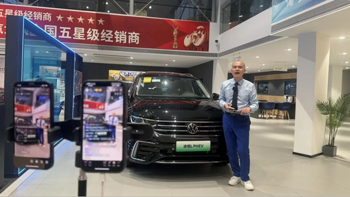 “不是任何人都適合面對鏡頭,所有銷售顧問必須輪播上崗,通過全員直播選拔優(yōu)秀主播人員和銷售支持?!笔袌鰧n}會議上,蘇舜對直播營銷的人員架構(gòu)和主播的選拔提出了明確要求。蘇舜年輕人居多,他們不僅充滿活力,而且對新鮮事物感興趣,公司從中挑選出形象好、口才出眾、專業(yè)能力強(qiáng)等方面均較為優(yōu)異的員工,經(jīng)過培訓(xùn)后組成主播團(tuán),輪流在網(wǎng)絡(luò)上展示自我,試播通過后再擇優(yōu)確定最終人選,讓員工既下得了車間,還上得了直播間。目前,公司11家4S店直播營銷團(tuán)隊(duì)均為“1+1+3”的架構(gòu)(即:1名專職主播、1名兼職主播和邀約專員、銷售顧問、服務(wù)顧問3名銷售支持人員),形成類似DCC的直播小組協(xié)同作戰(zhàn),主播人員中既有企業(yè)一線員工,也有基層管理崗位人員。
