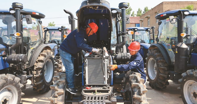 連日來,連云港市海州區(qū)崗埠農(nóng)場(chǎng)農(nóng)機(jī)總站組織工作人員,對(duì)農(nóng)機(jī)及農(nóng)具進(jìn)行全面檢查、維護(hù)、修理、保養(yǎng),了解新設(shè)備的性能和操作方法,為即將到來的“三夏”大忙做好準(zhǔn)備。圖為5月23日,工作人員正在檢修一批農(nóng)機(jī)。 耿玉和 王貴珍 攝 (視覺江蘇網(wǎng)供圖)
