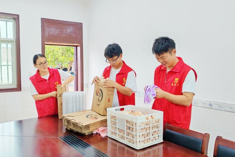 “一箱要裝滿50枚,大家仔細(xì)點(diǎn),挑好的放進(jìn)去?!边@兩日,臨海農(nóng)場產(chǎn)業(yè)發(fā)展中心格外忙碌,志愿者們正精心包裝著海棠雞蛋禮盒。中秋期間,海棠雞蛋也迎來了銷售高峰。