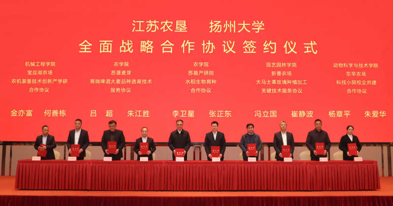 集團公司總經(jīng)濟師、相關(guān)部門負責人,相關(guān)農(nóng)場、蘇墾農(nóng)發(fā)等單位負責人,揚州大學相關(guān)學院及部門負責人、專家教授等參加簽約儀式。