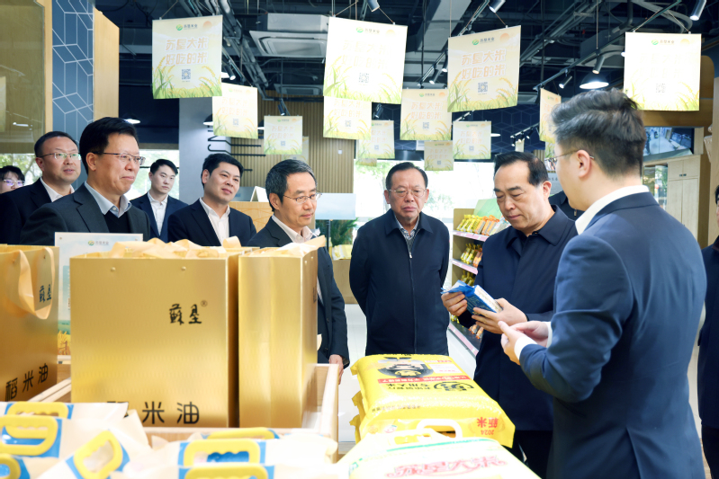 王榮平一行來到蘇墾尚膳門店,了解江蘇農(nóng)墾糧油產(chǎn)品和精深加工食品,調(diào)研科技創(chuàng)新、智慧農(nóng)業(yè)、農(nóng)產(chǎn)品全程質(zhì)量追溯等工作情況;在江蘇農(nóng)墾展示廳,詳細(xì)了解農(nóng)墾創(chuàng)業(yè)及改革發(fā)展歷程。