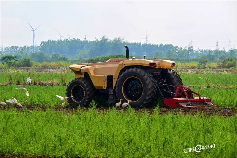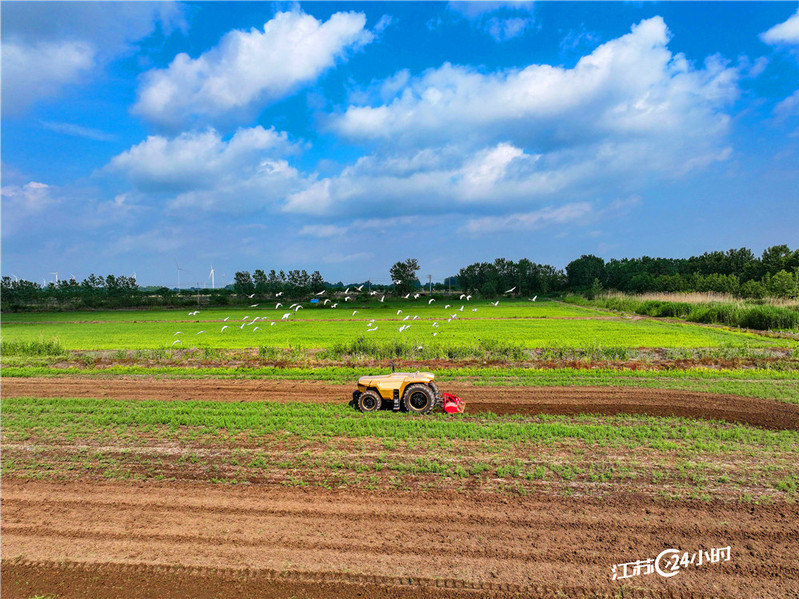 江蘇24小時|圖片新聞:寶應(yīng)湖農(nóng)場國產(chǎn)無人拖拉機(jī)引鷺鳥圍觀