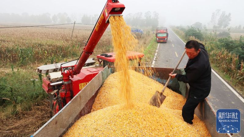 10月11日,江蘇省連云港市海州區(qū)崗埠農(nóng)場工作人員在裝運玉米。