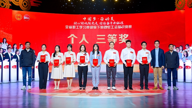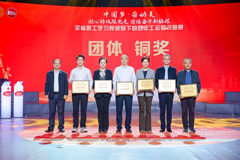 10月24日,由江蘇省總工會(huì)舉辦的“中國夢·勞動(dòng)美——凝心鑄魂跟黨走,團(tuán)結(jié)奮斗新征程”全省職工學(xué)習(xí)黨領(lǐng)導(dǎo)下的百年工運(yùn)知識(shí)競賽活動(dòng)在江蘇省廣播電視總臺(tái)1號(hào)演播大廳舉行,來自全省各地市和產(chǎn)業(yè)工會(huì)的23支代表隊(duì)、69名精英選手參與比賽。上午的初賽中,集團(tuán)代表隊(duì)的欒薇、王淑玉、黃昊之3名隊(duì)員克服備賽人員分散、備賽時(shí)間短等困難,在初賽三輪比拼中越戰(zhàn)越勇,以團(tuán)體第五名的成績殺入下午總決賽,決賽中隊(duì)員們團(tuán)結(jié)拼搏、穩(wěn)定發(fā)揮,最終獲得1名個(gè)人二等獎(jiǎng)、2名個(gè)人三等獎(jiǎng)和團(tuán)體銅獎(jiǎng)的好成績。