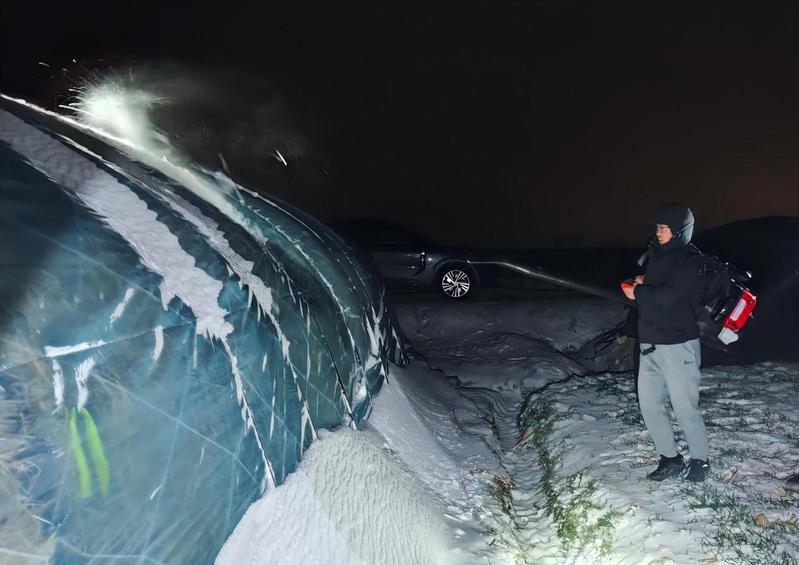 淮海農(nóng)場則構(gòu)建起“生產(chǎn)防護(hù)+民生保障”的全方位防御體系,第一時間傳達(dá)學(xué)習(xí)省農(nóng)業(yè)農(nóng)村廳緊急通知精神,牢固樹立“人民至上、生命至上”理念。在生產(chǎn)端,蘇墾農(nóng)發(fā)淮海分公司重點(diǎn)強(qiáng)化麥苗分類管護(hù),對晚播弱苗和旺長苗采取鎮(zhèn)壓保墑、合理施肥等措施。農(nóng)場則在羊肚菌基地加固大棚并做好積雪清理準(zhǔn)備,畜禽養(yǎng)殖區(qū)全面排查水電線路、配備備用發(fā)電機(jī),通過優(yōu)化飼料營養(yǎng)保障畜禽安全越冬。在民生端,同步推進(jìn)基礎(chǔ)設(shè)施防凍,對綠化樹木噴施防凍液、對裸露供水管網(wǎng)進(jìn)行保溫包裹,特別關(guān)注孤寡老人、困難職工等群體,安排專人上門檢查取暖設(shè)備、儲備生活用水。目前,農(nóng)場已落實24小時值班制度,成立應(yīng)急小隊并儲備充足物資,確保一旦發(fā)生險情能夠快速處置。