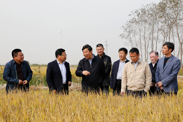10月23日上午,集團(tuán)公司總經(jīng)理、蘇墾農(nóng)發(fā)股份公司董事長(zhǎng)胡兆輝到三河檢查指導(dǎo)工作,三河領(lǐng)導(dǎo)班子趙廣福、韓樹明、王正友、魏炳記等陪同檢查?! ∪锛磳㈤_始,三河的秋收秋種工作準(zhǔn)備如何是胡兆輝十分關(guān)注