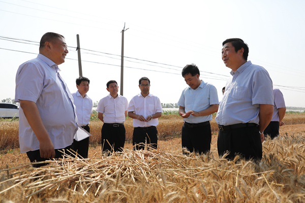 6月13日下午,集團公司總經(jīng)理、蘇墾農(nóng)發(fā)股份有限公司董事長胡兆輝到濱淮檢查指導(dǎo)工作。濱淮領(lǐng)導(dǎo)班子李德利、傅龍光、李文忠、馬傳武陪同并匯報工作?! 『纵x一行先后深入七大隊收割現(xiàn)場、第三生產(chǎn)區(qū)場頭、