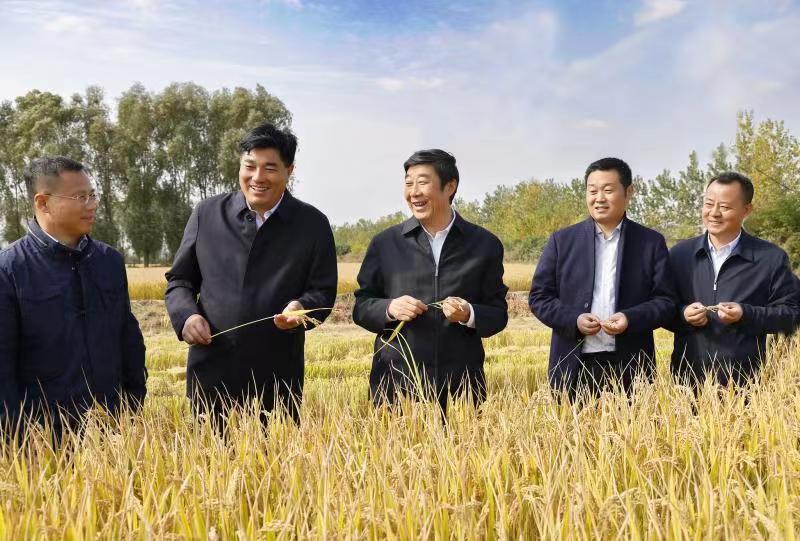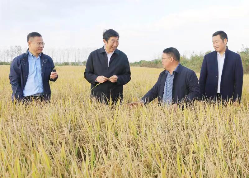 10月27日下午,集團(tuán)公司黨委副書(shū)記、總經(jīng)理胡兆輝到新曹考察調(diào)研。集團(tuán)公司農(nóng)業(yè)發(fā)展部負(fù)責(zé)人、蘇墾農(nóng)發(fā)股份有限公司總裁、新曹農(nóng)場(chǎng)公司黨委領(lǐng)導(dǎo)班子成員陪同調(diào)研。胡兆輝一行先后來(lái)到新曹農(nóng)場(chǎng)匡東1大隊(duì)水稻種植區(qū)、老塘15大隊(duì)水稻繁種田、何垛豐收河北有著“江蘇農(nóng)墾第一田”美譽(yù)的四千畝連片水稻高產(chǎn)片以及建北居委會(huì)紅星河北生豬養(yǎng)殖場(chǎng)等地,詳細(xì)查看了解水稻長(zhǎng)勢(shì)、收割進(jìn)度、秋播準(zhǔn)備以及生豬養(yǎng)殖情況。胡兆輝指出,要深入學(xué)習(xí)宣傳貫徹黨的二十大精神,在全面學(xué)習(xí)、全面把握、全面落實(shí)上下功夫,深刻領(lǐng)會(huì)“兩個(gè)確立”的決定性意義,增強(qiáng)“四個(gè)意識(shí)”、堅(jiān)定“四個(gè)自信”、做到“兩個(gè)維護(hù)”,自覺(jué)在思想上政治上行動(dòng)上同以習(xí)近平同志為核心的黨中央保持高度一致。胡兆輝強(qiáng)調(diào),要堅(jiān)定扛穩(wěn)糧食安全政治責(zé)任,認(rèn)真落實(shí)“藏糧于地、藏糧于技”戰(zhàn)略,持續(xù)抓好高標(biāo)準(zhǔn)農(nóng)田建設(shè),不斷完善農(nóng)田基礎(chǔ)設(shè)施,集中精力、集中力量,加強(qiáng)統(tǒng)籌、科學(xué)作業(yè),有力有序組織好“三秋”生產(chǎn)工作,確保秋收、秋種、秋管高質(zhì)量完成。胡兆輝要求,要勇于擔(dān)當(dāng)、善于作為,進(jìn)一步提升產(chǎn)業(yè)發(fā)展、城鎮(zhèn)建設(shè)、基礎(chǔ)設(shè)施和生態(tài)治理水平,不斷彰顯闖新路、開(kāi)新局、搶新機(jī)、出新績(jī)的使命擔(dān)當(dāng),為江蘇農(nóng)墾高