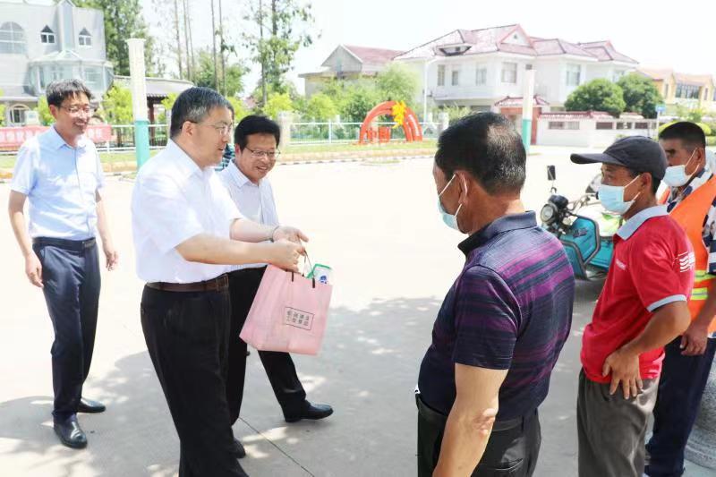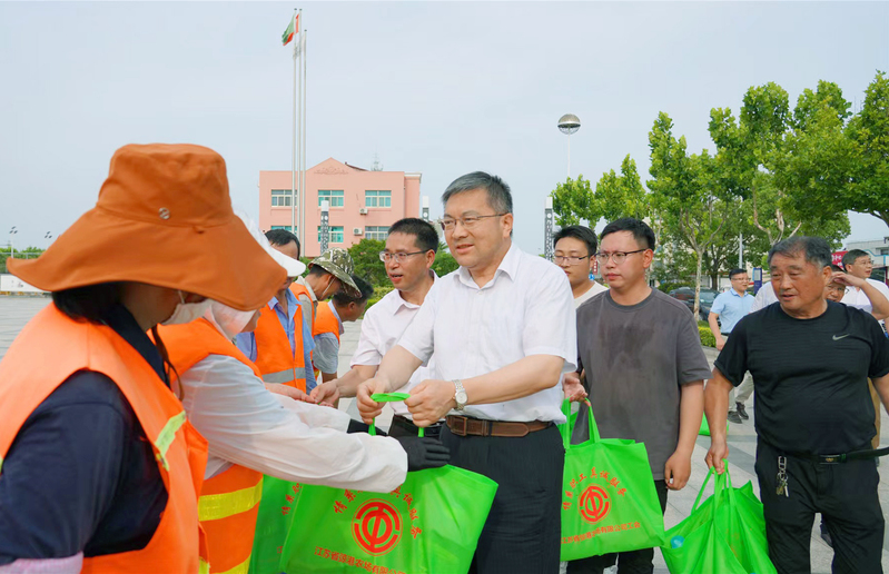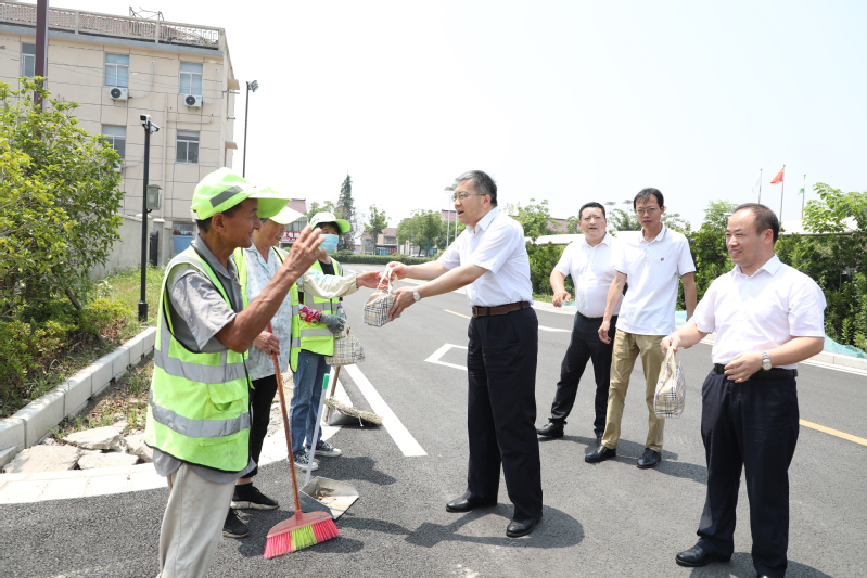 7月12日,集團(tuán)公司黨委委員、工會(huì)主席楊義林到江心沙開(kāi)展“送清涼”慰問(wèn),為高溫下一線(xiàn)工作人員送去“清涼”和關(guān)懷。江心沙農(nóng)場(chǎng)公司黨委班子成員陪同。楊義林先后來(lái)到道路邊、田地頭慰問(wèn)高溫下堅(jiān)守一線(xiàn)崗位的環(huán)衛(wèi)工人和農(nóng)業(yè)職工。在環(huán)衛(wèi)工人工作現(xiàn)場(chǎng),楊義林與環(huán)衛(wèi)工人親切交談,把防暑降溫用品送到每位環(huán)衛(wèi)工人手上,親切叮囑大家高溫期間要?jiǎng)谝萁Y(jié)合,注意安全,做到有效防護(hù),避免高溫中暑。在田頭,楊義林感謝大家為農(nóng)業(yè)生產(chǎn)所付出的艱辛勞動(dòng),關(guān)切詢(xún)問(wèn)大家日常工作強(qiáng)度和保障措施,囑咐大家在高溫天氣作業(yè)時(shí)注意身體,保持良好狀態(tài)應(yīng)對(duì)田間作業(yè)。