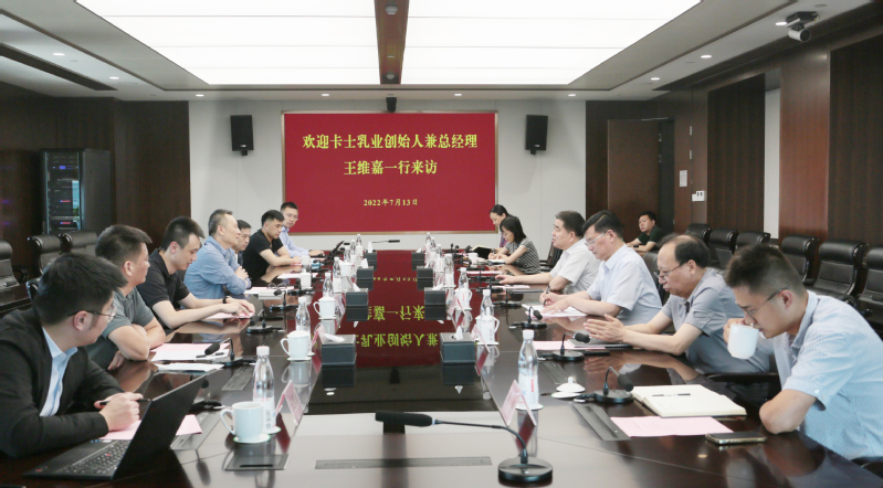 7月13日下午,集團(tuán)公司黨委書(shū)記、董事長(zhǎng)魏紅軍在集團(tuán)總部會(huì)見(jiàn)卡士乳業(yè)創(chuàng)始人兼總經(jīng)理王維嘉一行并座談。集團(tuán)公司董事會(huì)秘書(shū)孟亞平、卡士乳業(yè)獨(dú)立董事黃品奇參加會(huì)見(jiàn)。魏紅軍對(duì)王維嘉一行的到來(lái)表示歡迎,并介紹了江蘇農(nóng)墾總體情況和乳業(yè)振興行動(dòng)。他說(shuō),江蘇農(nóng)墾致力現(xiàn)代農(nóng)業(yè)建設(shè),推動(dòng)乳業(yè)振興。進(jìn)入“十四五”,集團(tuán)大力實(shí)施強(qiáng)核戰(zhàn)略,做大做強(qiáng)現(xiàn)代農(nóng)業(yè)核心產(chǎn)業(yè),把推動(dòng)乳業(yè)振興作為重要抓手,傾力打造種養(yǎng)循環(huán)生態(tài)牧場(chǎng)??ㄊ咳闃I(yè)是有產(chǎn)業(yè)抱負(fù)和社會(huì)責(zé)任的頭部乳企,希望雙方進(jìn)一步深化交流合作,更好履行責(zé)任使命,共同為中國(guó)奶業(yè)振興和服務(wù)高品質(zhì)生活作出貢獻(xiàn)。王維嘉對(duì)江蘇農(nóng)墾的高質(zhì)量發(fā)展理念和成績(jī)表示贊賞,并介紹了卡士乳業(yè)23年創(chuàng)業(yè)歷程、品牌建設(shè)以及未來(lái)發(fā)展規(guī)劃和市場(chǎng)布局。他表示,高品質(zhì)乳品離不開(kāi)高品質(zhì)奶源,期待能夠更好發(fā)揮江蘇農(nóng)墾的資源優(yōu)勢(shì)和卡士乳業(yè)的市場(chǎng)優(yōu)勢(shì),共同打造高標(biāo)準(zhǔn)現(xiàn)代化牧場(chǎng),為社會(huì)奉獻(xiàn)更加安全、營(yíng)養(yǎng)、健康的優(yōu)質(zhì)乳品。集團(tuán)公司戰(zhàn)略投資部、投資公司負(fù)責(zé)人參加座談。