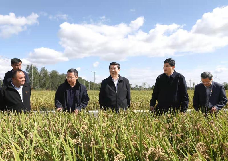 10月18日,集團(tuán)公司黨委副書(shū)記、總經(jīng)理、蘇墾農(nóng)發(fā)股份公司董事長(zhǎng)胡兆輝深入黃海檢查指導(dǎo)工作,蘇墾農(nóng)發(fā)公司總裁、黃海農(nóng)場(chǎng)公司領(lǐng)導(dǎo)班子成員陪同并匯報(bào)情況。胡兆輝先后查看不同受災(zāi)程度的水稻田塊,深入收割現(xiàn)場(chǎng)和糧食場(chǎng)頭,詳細(xì)了解“三秋”工作整體開(kāi)展情況。胡兆輝指出,受連續(xù)降雨大風(fēng)影響,黃海面對(duì)“雨量最大、災(zāi)情最重、范圍最廣”的嚴(yán)峻挑戰(zhàn),公司黨委一班人高度重視、積極應(yīng)對(duì)、措施及時(shí)有力,團(tuán)結(jié)帶領(lǐng)全場(chǎng)干部職工“抗災(zāi)保糧奪豐收”,農(nóng)場(chǎng)實(shí)現(xiàn)和諧穩(wěn)定,在田作物受損程度降到最低,集團(tuán)公司給予充分肯定。針對(duì)下一步工作,胡兆輝強(qiáng)調(diào):一是堅(jiān)定信心,全力打贏“三秋”戰(zhàn)役。當(dāng)前,公司上下要全力圍繞“三秋”、一切服務(wù)于“三秋”,統(tǒng)籌協(xié)調(diào)一切積極因素,把受災(zāi)被動(dòng)轉(zhuǎn)變?yōu)楦哔|(zhì)量完成“1+2”戰(zhàn)略的主動(dòng),著眼周年綜合效益,把握農(nóng)發(fā)全產(chǎn)業(yè)鏈大局,在集團(tuán)公司“強(qiáng)核戰(zhàn)略”和中國(guó)現(xiàn)代農(nóng)業(yè)航母“江蘇號(hào)”的戰(zhàn)略打造中體現(xiàn)黃海擔(dān)當(dāng)。二是抓實(shí)抓細(xì),強(qiáng)化環(huán)節(jié)措施到位。要主動(dòng)把黃海工作放在集團(tuán)公司和農(nóng)發(fā)公司全局考慮,全力圍繞“三秋”指揮部各項(xiàng)部署,強(qiáng)化執(zhí)行、狠抓落實(shí),做到措施環(huán)環(huán)相扣抓落實(shí),形成“三秋”措施上下貫通執(zhí)行,一體協(xié)同推進(jìn),確保保糧保種