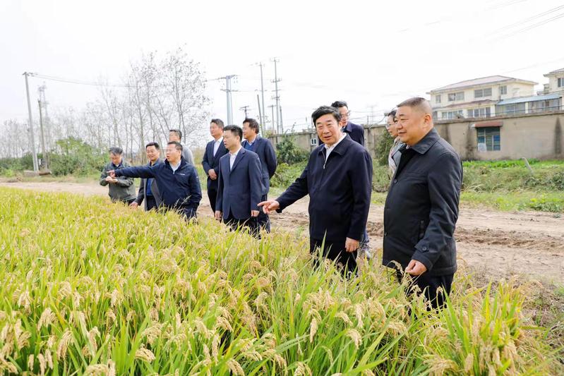 10月17日上午,集團(tuán)公司黨委副書(shū)記、總經(jīng)理、蘇墾農(nóng)發(fā)公司董事長(zhǎng)胡兆輝到新洋檢查指導(dǎo)工作,蘇墾農(nóng)發(fā)公司總裁、新洋農(nóng)場(chǎng)公司領(lǐng)導(dǎo)班子成員陪同。胡兆輝一行先后實(shí)地查看了水稻在田長(zhǎng)勢(shì)、水稻受災(zāi)倒伏現(xiàn)場(chǎng)、油菜小麥播種田塊、場(chǎng)頭等地,聽(tīng)取了“三秋”工作情況匯報(bào),親切慰問(wèn)生產(chǎn)一線工作人員,指導(dǎo)水稻抗災(zāi)減損,關(guān)心青年職工成長(zhǎng)成才,對(duì)新洋黨委組織廣大干群積極捆稻減損的做法給予了肯定。胡兆輝指出,新洋的“三秋”工作可以用“產(chǎn)量較高”“質(zhì)量較好”“秋播主動(dòng)”“效益理想”四個(gè)詞進(jìn)行總結(jié)?!叭铩惫ぷ魇钱?dāng)前的中心工作和重點(diǎn)工作,要充分認(rèn)識(shí)今年“三秋”工作的不利形勢(shì),嚴(yán)格貫徹落實(shí)蘇墾農(nóng)發(fā)指揮部“三秋”工作指示精神,提高站位、服從命令,一切圍繞質(zhì)量,“保好種、保好糧”,切實(shí)打贏“三秋”攻堅(jiān)戰(zhàn)。胡兆輝要求,要全力以赴抗災(zāi)減損,盡最大努力顆粒歸倉(cāng),把水稻災(zāi)害損失降到最低。要充分認(rèn)識(shí)“基地安農(nóng)發(fā),秋播是關(guān)鍵”,抓好秋播關(guān)鍵環(huán)節(jié)和質(zhì)量,要主動(dòng)扛起國(guó)企責(zé)任和社會(huì)擔(dān)當(dāng)。胡兆輝強(qiáng)調(diào),要以高站位、大格局、長(zhǎng)遠(yuǎn)見(jiàn)潛心謀劃新洋各項(xiàng)工作,以高質(zhì)量發(fā)展獻(xiàn)禮江蘇農(nóng)墾成立70周年。