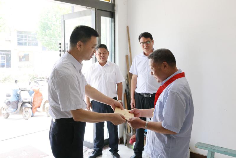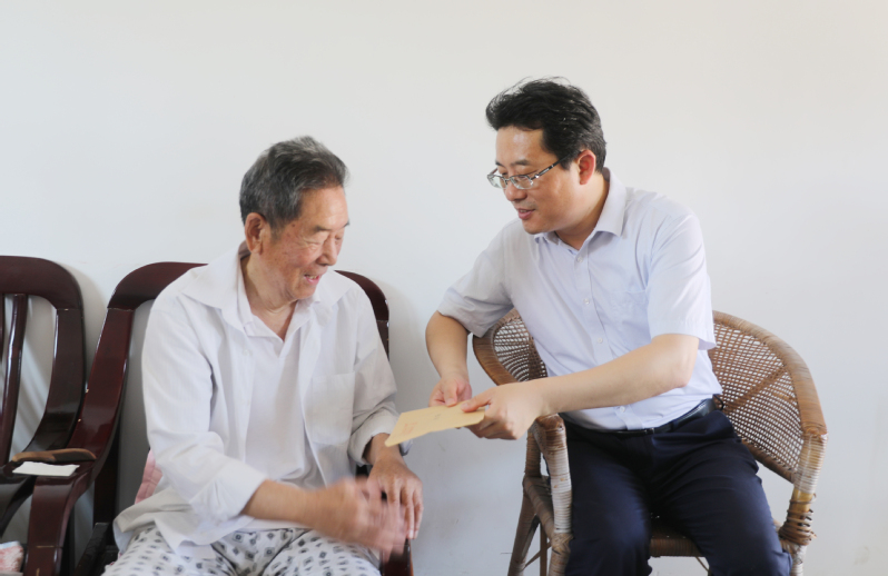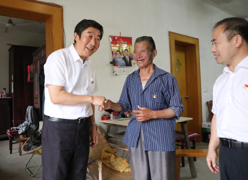 6月23日上午,集團(tuán)公司黨委委員、副總經(jīng)理姜建友一行到崗埠走訪慰問(wèn)部分困難黨員,為他們送去集團(tuán)公司黨委的關(guān)懷和溫暖。農(nóng)場(chǎng)公司黨委主要領(lǐng)導(dǎo)陪同。姜建友一行先后來(lái)到老黨員包加能、許守喬、朱同寶的家中,他們都有50年以上的黨齡,每到一家都與大家親切交談,詳細(xì)詢問(wèn)他們的健康狀況、日常生活等情況,并親手給他們戴上“光榮在黨50年”紀(jì)念章,送上慰問(wèn)金和慰問(wèn)品。當(dāng)?shù)弥幽軈⒓舆^(guò)“抗美援朝”時(shí),姜建友對(duì)老人表示崇高的敬意,他說(shuō):“老黨員是黨和國(guó)家的寶貴財(cái)富,在喜迎建黨百年的重要時(shí)刻,更要讓他們切實(shí)感受到黨組織的關(guān)懷和溫暖”。姜建友充分肯定農(nóng)場(chǎng)公司黨委開(kāi)展“我為職工居民辦實(shí)事”實(shí)踐活動(dòng)的成效,要求農(nóng)場(chǎng)公司黨委要解決焦點(diǎn)堵點(diǎn)難點(diǎn)問(wèn)題,繼續(xù)推動(dòng)黨史學(xué)習(xí)教育走深走實(shí),引領(lǐng)職工群眾聽(tīng)黨話、感黨恩、跟黨走,以實(shí)際行動(dòng)奮進(jìn)新時(shí)代、擔(dān)當(dāng)新使命、展現(xiàn)新作為。