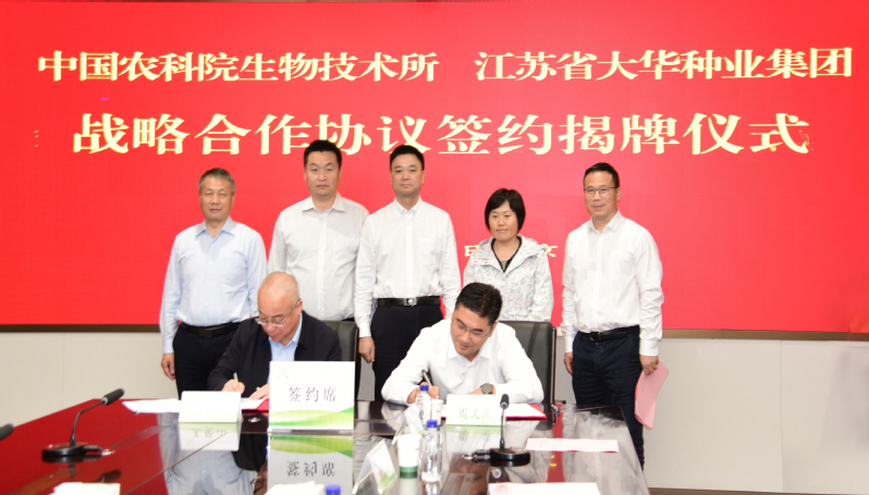 11月15日下午,大華種業(yè)與中國(guó)農(nóng)科院生物技術(shù)研究所戰(zhàn)略合作協(xié)議簽約暨中國(guó)農(nóng)科院生物技術(shù)研究所大華種業(yè)研發(fā)基地揭牌儀式在南京舉行。集團(tuán)黨委副書記、總經(jīng)理姜建友出席儀式并致辭,中國(guó)農(nóng)科院生物技術(shù)研究所所長(zhǎng)、黨委副書記王登山出席儀式并講話,集團(tuán)公司總經(jīng)濟(jì)師朱亞?wèn)|主持儀式。姜建友對(duì)王登山一行的到來(lái)表示歡迎。他表示,中國(guó)農(nóng)科院生物技術(shù)研究所是從事農(nóng)業(yè)生物技術(shù)領(lǐng)域基礎(chǔ)研究、應(yīng)用基礎(chǔ)研究和高新技術(shù)研究的國(guó)家級(jí)科研機(jī)構(gòu),多年來(lái)在作物功能基因組、作物分子生物學(xué)等領(lǐng)域取得了一系列重要?jiǎng)?chuàng)新成果。大華種業(yè)作為蘇墾農(nóng)發(fā)種業(yè)板塊的載體,在農(nóng)作物種子研發(fā)、繁育、生產(chǎn)和市場(chǎng)推廣等方面具有明顯優(yōu)勢(shì)。期待雙方深化提升全面戰(zhàn)略合作,充分發(fā)揮各自優(yōu)勢(shì),積極打造中國(guó)農(nóng)科院生物技術(shù)研究所大華種業(yè)研發(fā)基地,加快農(nóng)作物新品種試驗(yàn)示范及成果推廣應(yīng)用,探索共建聯(lián)合實(shí)驗(yàn)室,推動(dòng)在基因組測(cè)序、基因型檢測(cè)、多組學(xué)生物信息分析以及轉(zhuǎn)基因性狀創(chuàng)制等方面取得實(shí)質(zhì)性成效,共同打造產(chǎn)研合作示范標(biāo)桿,為加快推動(dòng)現(xiàn)代農(nóng)業(yè)高質(zhì)量發(fā)展,打造種源科技創(chuàng)新策源地、新質(zhì)生產(chǎn)力重要實(shí)踐地作出新的更大貢獻(xiàn)。王登山感謝江蘇農(nóng)墾對(duì)中國(guó)農(nóng)科院生物技術(shù)研究所的信任和支持。他表