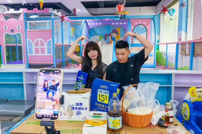 8月30—31日,“蘇超”第十輪重燃戰(zhàn)火,賽場(chǎng)內(nèi)的激情吶喊與賽場(chǎng)外的消費(fèi)熱潮相互交織。南通公司搶抓機(jī)遇、貼近現(xiàn)場(chǎng),依托場(chǎng)外供銷市集、現(xiàn)場(chǎng)推廣、直播帶貨等多渠道帶動(dòng)營銷收入大幅增長,兩天內(nèi)線上線下銷售近1.2萬元。在距離本輪南通隊(duì)主場(chǎng)體育會(huì)展中心最近的軌道交通1號(hào)線圖書館站,一場(chǎng)以“燃情賞蘇超·品鮮悅雙城”為主題的供銷市集熱鬧開市,南通公司旗下墾優(yōu)鮮品供應(yīng)鏈公司攜優(yōu)質(zhì)糧油、牛奶、雞蛋等特色農(nóng)產(chǎn)品亮相市集。“看到這款大米就覺得熟悉,經(jīng)常能在各種市集活動(dòng)看到你們的身影,”在市區(qū)居住的李阿姨在攤位前停下腳步,“這款大米我之前買回去覺得特別好吃,今天再帶兩包?!笔屑希簧偈炜?、新客都來挑選自己心儀的產(chǎn)品,31日比賽當(dāng)日,墾優(yōu)鮮品也在這里搭建了直播間。“我們與南通市供銷合作總社建立了良好合作關(guān)系,也得到了這個(gè)與‘蘇超’近距離接觸的機(jī)會(huì),這里人流量很大,能充分向廣大的居民和線上的朋友推薦我們的品牌。”現(xiàn)場(chǎng)主播孫宏宇介紹道。同樣在31日,晚間七點(diǎn)半南通與蘇州的比賽正式開始,在場(chǎng)外,墾優(yōu)鮮品直播間的主播們也同步開展“蘇墾優(yōu)品”的推介,“關(guān)注視頻號(hào)、加入粉絲群即可領(lǐng)取小獎(jiǎng)品”“家人們可以蹲一蹲直播間今晚