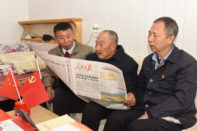 這堂特殊的黨課,讓家庭黨員們?cè)僖淮?/span>感受到這位老共產(chǎn)黨員的初心和使命,同時(shí)后輩的黨員也在向老人送、讀黨史書籍、講述新中國(guó)的快速發(fā)展和淮海農(nóng)場(chǎng)及至家庭中,呈現(xiàn)出一個(gè)又一個(gè)的新變化時(shí),張國(guó)裕老人聽(tīng)了笑臉如花般地豎起大姆指連聲說(shuō)“好、好、好!”