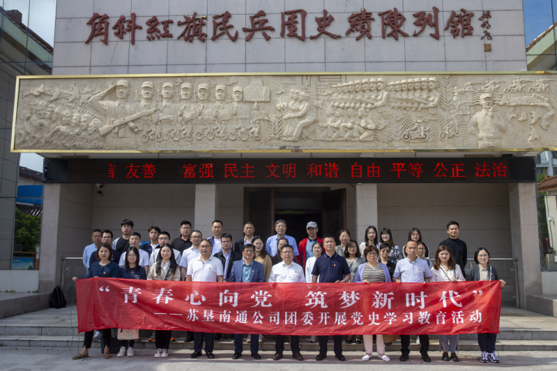 5月21日,為紀(jì)念中國(guó)共產(chǎn)黨建黨100周年,蘇墾南通公司團(tuán)委聯(lián)合江海街道團(tuán)委開展“青春心向黨 筑夢(mèng)新時(shí)代”主題活動(dòng),以“4+1”沉浸式實(shí)景教學(xué)方式,踐行傳承革命精神,引導(dǎo)廣大團(tuán)員青年在百年黨史中汲取前行發(fā)展的智慧和力量。蘇墾南通公司黨委書記、董事長(zhǎng)、農(nóng)發(fā)南通分公司總經(jīng)理嚴(yán)忠,蘇墾南通公司黨委副書記、工會(huì)主席、農(nóng)場(chǎng)公司總經(jīng)理朱忠惠,江海街道黨工委副書記李海洋,江海鎮(zhèn)區(qū)社管會(huì)副主任許云鳳、徐培等5位領(lǐng)導(dǎo)和30余名青年團(tuán)員參加了活動(dòng)。