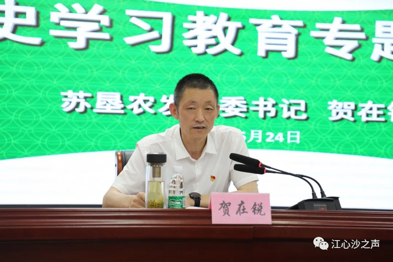 賀在銳分別從深入學(xué)習(xí)領(lǐng)會(huì)習(xí)近平總書(shū)記關(guān)于黨的歷史的重要論述,充分認(rèn)識(shí)開(kāi)展黨史學(xué)習(xí)教育的重大意義;認(rèn)真研讀黨史基本著作,全面了解中國(guó)共產(chǎn)黨百年奮斗的光輝歷程和歷史性成就;深刻把握開(kāi)展黨史學(xué)習(xí)教育的重點(diǎn),扎實(shí)做好“六個(gè)進(jìn)一步”;開(kāi)展黨史學(xué)習(xí)教育,要學(xué)懂弄通做實(shí)習(xí)近平新時(shí)代中國(guó)特色社會(huì)主義思想,增強(qiáng)“四個(gè)意識(shí)”,堅(jiān)定“四個(gè)自信”,做到“兩個(gè)維護(hù)”等方面,對(duì)黨史學(xué)習(xí)教育的重要意義、重要方法、重點(diǎn)工作作了概述,解讀了中國(guó)共產(chǎn)黨的百年光輝歷程,并結(jié)合蘇墾農(nóng)發(fā)和江心沙發(fā)展實(shí)際探析了在當(dāng)前國(guó)際環(huán)境、國(guó)內(nèi)條件下的高質(zhì)量發(fā)展之路。