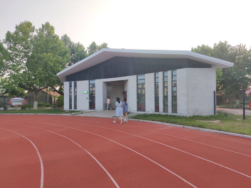 人民對美好生活的向往,就是我們的奮斗目標。只有心中裝著職工群眾,這樣才能較好的把尋常職工百姓心中的小事、瑣事關注到、解決好。職工群眾才會有更多的獲得感和幸福感。圖為淮海職工休閑體育運動廣場上配置的自助飲料機及公共廁所的照片。