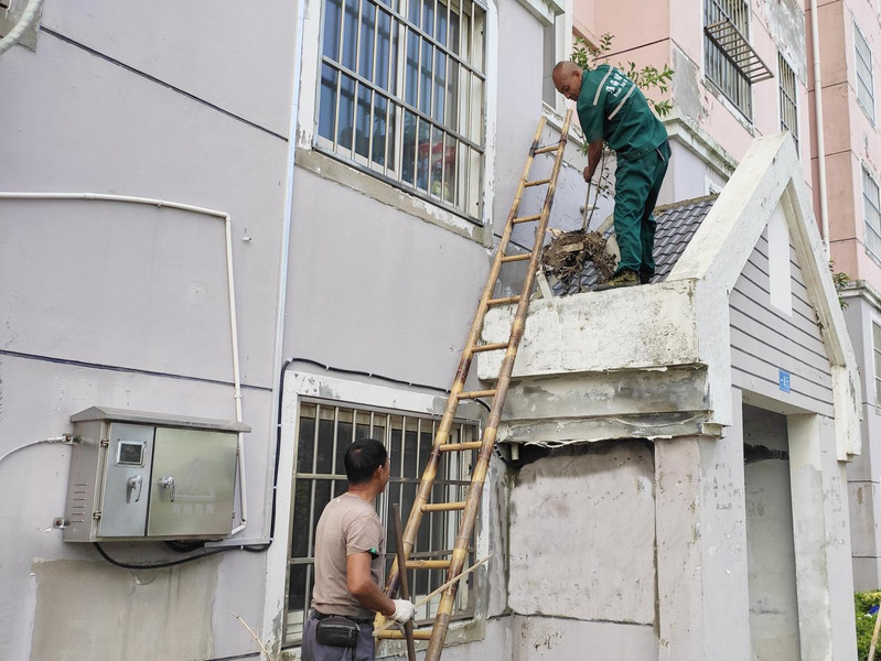 淮海城南社區(qū)組織樓房頂棚垃圾清理行動(dòng)