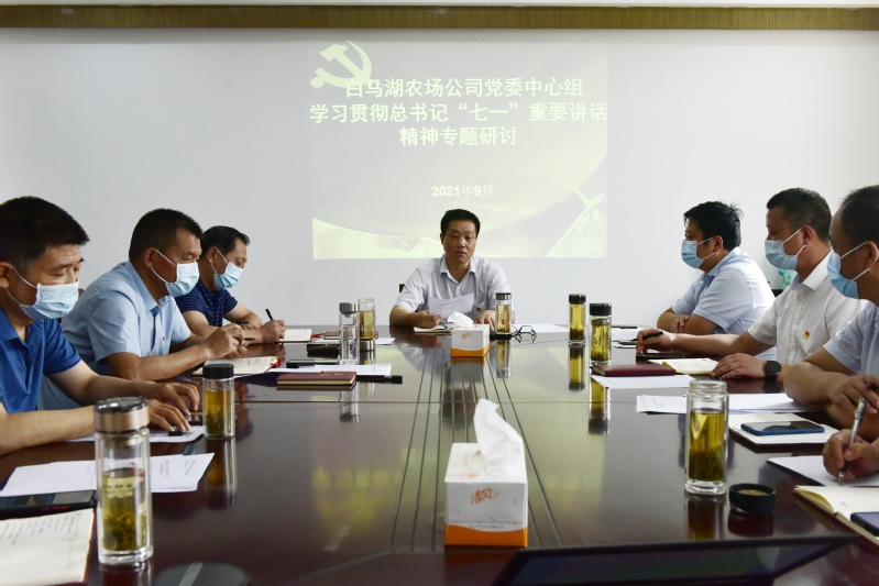 9月28日上午,白馬湖農(nóng)場(chǎng)公司黨委中心組舉行“學(xué)習(xí)貫徹落實(shí)習(xí)近平總書記在慶祝中國(guó)共產(chǎn)黨成立100周年大會(huì)上的講話精神”專題研討會(huì),黨委書記姚春華主持研討會(huì),中心組全體成員參加會(huì)議。