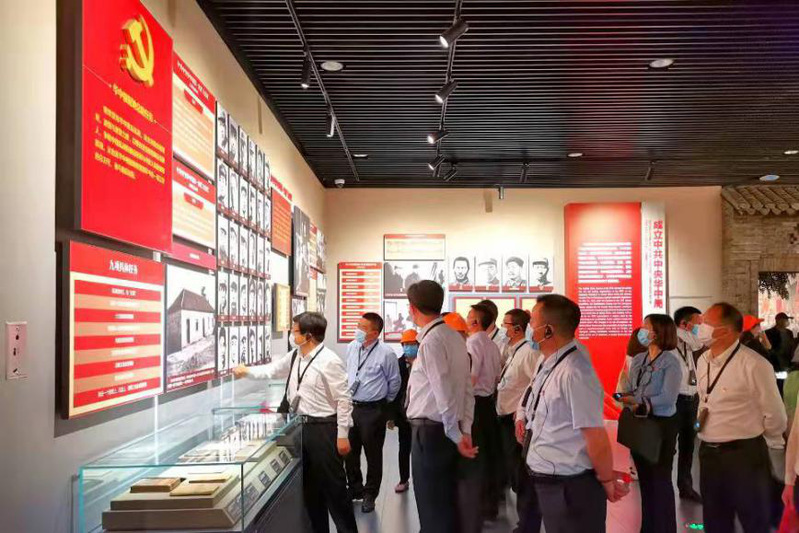 探尋場外紅色資源。公司黨委利用臨近的紅色資源開展實景學習。濱??h正紅鎮(zhèn)學習“五卅運動”精神,中心組成員到鹽城新四軍紀念館學習“鐵軍精神”,黨員骨干赴貴州學習“遵義會議精神”,學教辦到陜西延安學習“南泥灣精神”;組織250多名黨員、管理人員赴南京參觀“百年征程 初心永恒”中國共產黨江蘇歷史展;開展“跟著習近平總書記在江蘇的足跡學黨史”活動,學習貫徹總書記視察江蘇重要講話指示精神。通過訪學紅色資源,緬懷革命先烈、追尋先輩足跡,學習中國共產黨人系列精神,推動黨史學習教育走深走實。挖掘場內紅色資源。利用臨海農場陳列館、臨海農場公園暨黨史、新中國史教育基地、愛國主義教育基地等紅色教育陣地,建紅色文化“現(xiàn)場”課堂,每周“紅色電影”放映活動,豐富學習教育。