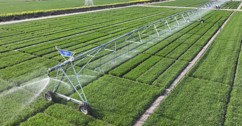 蘇墾農(nóng)發(fā)白馬湖分公司利用智慧農(nóng)機(jī)加強(qiáng)小麥管護(hù),圖為農(nóng)機(jī)手操作平行行走式水肥藥一體機(jī)在麥田施肥。