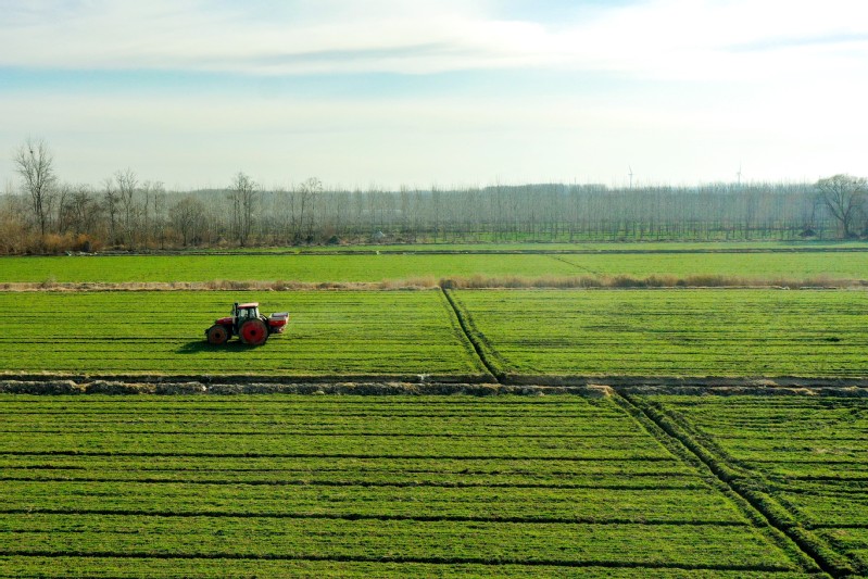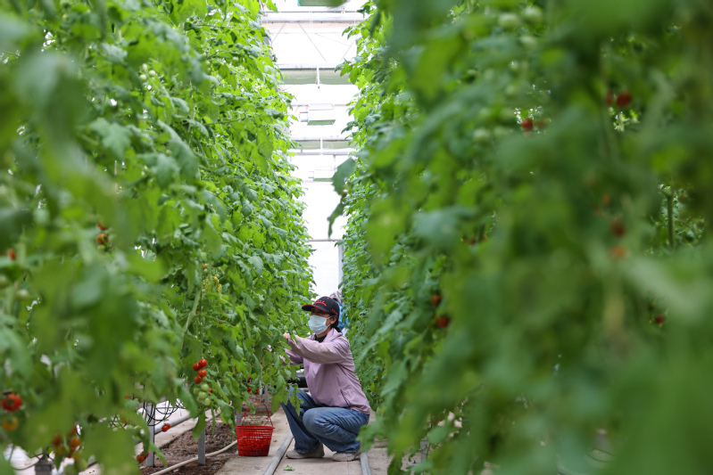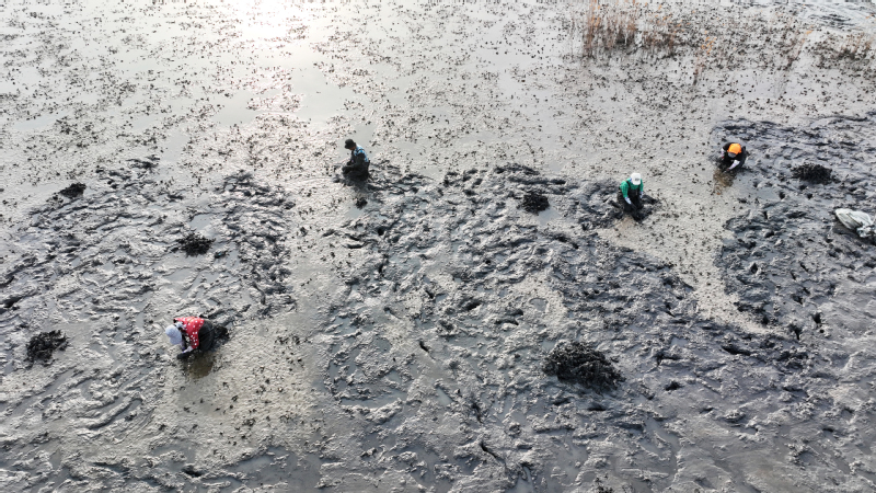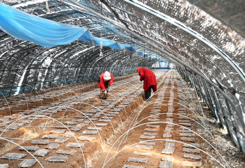 隨著氣溫逐漸升高,為保障羊肚菌正常生長發(fā)育,2月10日上午,淮海產(chǎn)業(yè)發(fā)展中心大棚基地工作人員,積極抓住羊肚菌原基萌發(fā)這一關(guān)鍵節(jié)點,有條不紊地進行揭膜、搭小棚等催菇前的準備工作?!敖裉焓俏覀兊谝慌蚨蔷シN后的第73天,目前有11個種植大棚內(nèi)的羊肚菌菌霜已經(jīng)完全消退,且出現(xiàn)了大量的原基,說明這批羊肚菌的菌絲已經(jīng)達到成熟,進入下一個發(fā)育階段?!毖蚨蔷N植技術(shù)員袁亞洲介紹說,“羊肚菌原基的形成是羊肚菌生長過程中的一個重要環(huán)節(jié),因此我們要及時揭開覆蓋在畦面上的地膜,保證原基獲取適宜的生長環(huán)境,確保原基能夠茁壯生長。?”羊肚菌大棚內(nèi),90多米長的畦面上,斷斷續(xù)續(xù)鋪滿了米粒大小的白色菌菇。技術(shù)員李博正拿著手機,在揭開地膜后的大棚內(nèi)來回穿梭,不時蹲下身子仔細查看羊肚菌原基的長勢,以及對營養(yǎng)袋中營養(yǎng)物質(zhì)的吸收情況。“羊肚菌菌絲扭結(jié)成球,形成晶瑩透明的米粒狀結(jié)構(gòu),就是羊肚菌的原基。因為十分微小,所以我都拿手機相機放大來看?!崩畈┙榻B說,“我們有好幾個種植大棚都出現(xiàn)了一兩個羊肚菌幼菇,也就是所謂的‘信號菇’,說明羊肚菌發(fā)育狀況良好,看來今年我們羊肚菌的產(chǎn)量前景不錯哩。?”為了達到增溫保濕的效果,基地的工作