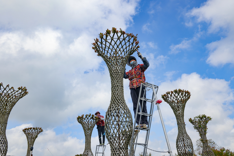 5月3日上午,在新洋容器苗項(xiàng)目基地,林業(yè)工人們堅(jiān)守崗位一線,手拿工具,正忙碌地進(jìn)行紫薇花瓶去芽作業(yè)。近期隨著氣溫持續(xù)走高,萬(wàn)物復(fù)蘇,容器苗項(xiàng)目基地里的紫薇花瓶枝芽生長(zhǎng)進(jìn)入高峰期?!叭舨患皶r(shí)去除而任嫩芽生長(zhǎng),勢(shì)必造成樹干上枝葉茂盛,遮擋花瓶瓶體,破壞整個(gè)造型的美觀,更為嚴(yán)重的是與頂部生長(zhǎng)爭(zhēng)搶水肥?!被刎?fù)責(zé)人梁亞洲介紹,紫薇花瓶在生長(zhǎng)期的時(shí)候要取出嫩芽,把紫薇的花枝截短,太長(zhǎng)在開花的時(shí)候就會(huì)影響整體的形狀,影響市場(chǎng)價(jià)值。