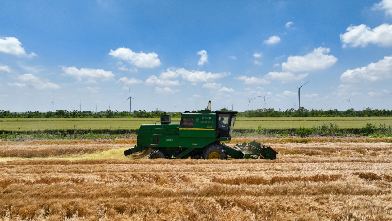 5月22日,伴隨著隆隆的農(nóng)機(jī)聲,大型聯(lián)合收割機(jī)駛?cè)胩K墾農(nóng)發(fā)新洋分公司新中生產(chǎn)區(qū)13大隊(duì)的高標(biāo)準(zhǔn)農(nóng)田里,對(duì)成熟的大麥開展機(jī)收作業(yè),開啟了夏收“第一鐮”。