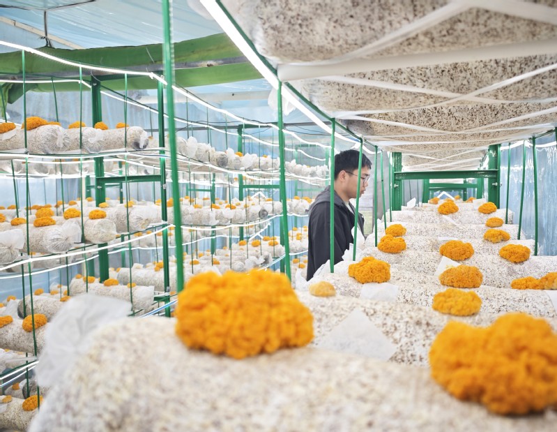 經(jīng)過一個(gè)月時(shí)間的培育,金耳菌在淮海農(nóng)場(chǎng)公司試種成功并將進(jìn)入采摘銷售環(huán)節(jié)。今年來,淮海農(nóng)場(chǎng)公司通過培植羊肚菌、赤松茸等食用菌產(chǎn)業(yè),助力鄉(xiāng)村振興。圖為5月12日,技術(shù)人員正在檢查金耳菌的生長(zhǎng)情況。