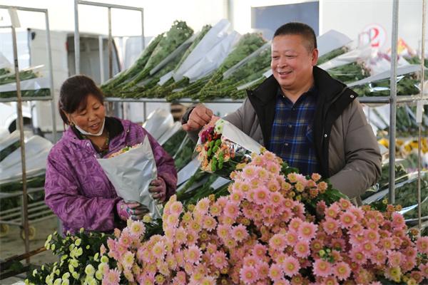 走進(jìn)富民農(nóng)業(yè)科技園14號(hào)大棚,雛菊鮮切花成熟上市,工人們正在溫室大棚里挑選裁切雛菊花。在包裝車間內(nèi),工人們正在整理數(shù)以萬計(jì)的雛菊,去掉多余枝葉,整理包裝成一束束精美的花束,不遠(yuǎn)處的三大排貨架上,全部都是五顏六色的雛菊?!拔覀儓@區(qū)種植了5個(gè)大棚的雛菊,約二三十個(gè)品種共15萬枝,現(xiàn)在相繼進(jìn)入采摘期。現(xiàn)在園區(qū)一邊采摘雛菊,一邊忙著整理包裝,準(zhǔn)備供應(yīng)山東客商。”園區(qū)副主任魏建東介紹說,剛上市的雛菊每天采摘量在2000枝以上,往后會(huì)越來越多,不斷滿足市場(chǎng)需求。隨著社會(huì)經(jīng)濟(jì)的發(fā)展和人們生活水平的提高,鮮花逐漸成為更多人裝扮生活的必需品,消費(fèi)理念的改善促使鮮切花品種結(jié)構(gòu)日趨豐富。其中,雛菊以其色彩繁多、花型多樣、瓶插期長(zhǎng)、耐運(yùn)輸、清新動(dòng)人的花姿,受到廣大消費(fèi)者喜愛追捧。崗埠農(nóng)場(chǎng)公司緊盯市場(chǎng)需求,大力發(fā)展多元鮮切花種植,引進(jìn)新品種、新技術(shù),積極探索發(fā)展新路徑新模式,走特色鮮花發(fā)展之路?!爱?dāng)前,我們園區(qū)大力發(fā)展鮮切花產(chǎn)業(yè),從種植、包裝、銷售逐步升級(jí),進(jìn)一步轉(zhuǎn)變經(jīng)營模式,提高產(chǎn)業(yè)效能。在提高集體經(jīng)濟(jì)效益的同時(shí),發(fā)揮示范帶頭作用,為花農(nóng)的種植經(jīng)營創(chuàng)造更有利條件,在增加場(chǎng)域就業(yè)上做文章,爭(zhēng)取實(shí)現(xiàn)社會(huì)效益的最大