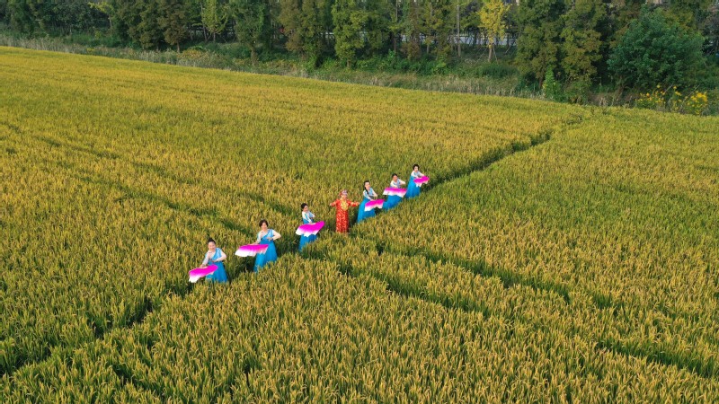 10月22日,江心沙舞蹈協(xié)會在金色的稻浪中載歌載舞,以原創(chuàng)舞蹈《在希望的田野上》歡慶豐收,喜迎重陽。