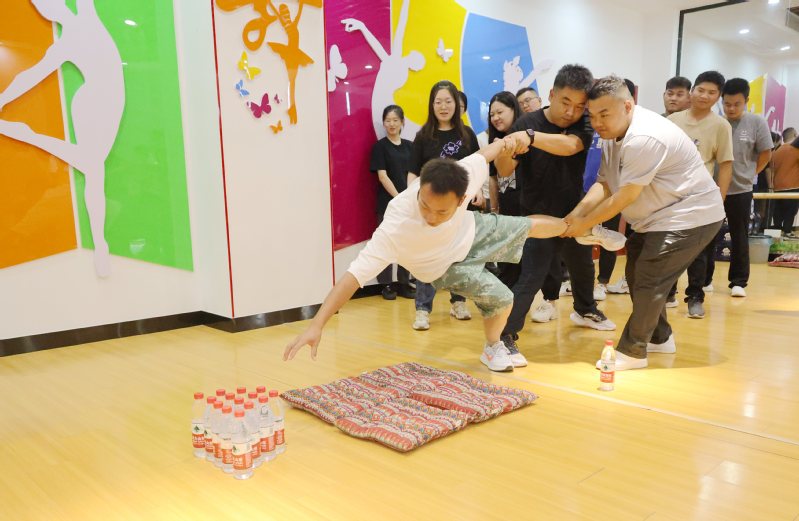 為了增強(qiáng)團(tuán)隊凝聚力,新曹組織青年員工參加團(tuán)建活動,現(xiàn)場游戲精彩紛呈。圖為大家在玩“群龍取水”游戲。