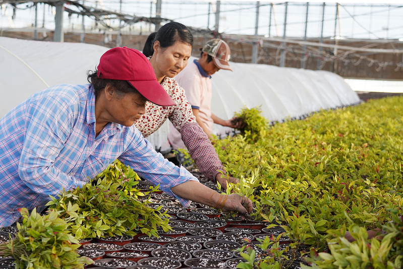 國慶長假期間,弶港農(nóng)場公司溫室大棚內(nèi)工人們忙著整理苗床,修剪枝條,第二批容器苗南天竹容器苗扦插工作正緊張進行?!拔覀兝^續(xù)堅持彩色化、珍貴化、精品化發(fā)展思路,在“差異化、鄉(xiāng)土化、市場化”做文章,不斷優(yōu)化品種結(jié)構(gòu),推進低效林改造升級,從而做精做優(yōu)弶港的林苗產(chǎn)業(yè)?!鞭r(nóng)場林業(yè)中心主任周海峰介紹。林業(yè)中心與江蘇國宏生態(tài)林業(yè)科技有限公司等優(yōu)質(zhì)苗企合作,栽植美國紅杉、黃金杉、垂絲海棠、樸樹等優(yōu)質(zhì)樹種1萬余株。新建2.3萬株南天竹標(biāo)準(zhǔn)采穗圃,力爭成活率達90%以上,形成苗木種類和結(jié)構(gòu)互補的良好發(fā)展態(tài)勢,逐步提高苗圃綜合性效益,實現(xiàn)苗圃建設(shè)高質(zhì)量發(fā)展。弶港農(nóng)場公司按照精準(zhǔn)施策的原則,加強圃地日常管理,嚴(yán)把施肥、除草防治等關(guān)鍵環(huán)節(jié),強化過程管理,提高良種壯苗出圃率。公司緊扣市場需求,確立了差異化、本土化、耐鹽化的品種結(jié)構(gòu),以品種優(yōu)勢實現(xiàn)銷售提效,9月份榮獲“江蘇省十大苗圃基地”稱號。