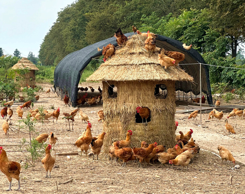 處暑剛過,白露將至,天氣逐漸轉(zhuǎn)涼。為給三分場杜仲林下生態(tài)養(yǎng)殖場的草雞們創(chuàng)造一個(gè)溫暖、舒適的棲息環(huán)境,日前,寶應(yīng)湖農(nóng)場生態(tài)農(nóng)莊結(jié)合家禽養(yǎng)殖時(shí)間、空間、健康需求,集中采購6個(gè)草編雞棚,進(jìn)一步增添了農(nóng)莊的生態(tài)韻味?!拔覀冞x擇草棚式雞窩主要是順應(yīng)草雞生活習(xí)性,給雞群營造生態(tài)環(huán)境,利用農(nóng)場生態(tài)優(yōu)勢,為游客們帶來沉浸式生態(tài)旅游體驗(yàn)?!鄙鷳B(tài)農(nóng)莊負(fù)責(zé)人一邊查看雞棚質(zhì)量,一邊介紹道?!半u棚用料厚實(shí),為降溫天氣雞群安全提供保障,敞開式雞窩供草雞休息、產(chǎn)蛋,有高有低的空間設(shè)計(jì)幫助雞群鍛煉體力,能增強(qiáng)雞肉緊實(shí)度?!薄翱┛┛?、嘰嘰嘰……”清晨,一陣陣歡快的雞鳴聲清脆悅耳、此起彼伏,杜仲林下生態(tài)養(yǎng)殖場一下子變得熱鬧起來。只見,草雞們?nèi)宄扇海蛞捠场⒒蛏⒉?、或撲棱著翅膀從平地“飛”上枝頭。新雞棚里,剛剛產(chǎn)出的雞蛋粉紅透亮、留有余溫,閉目養(yǎng)神的雞仔還在享受“新家”的舒適,更有一群精力旺盛的“探險(xiǎn)家”草雞們或是鉆進(jìn)草棚雞窩試試高度,或是登上棚頂“一比高下”。近年來,寶應(yīng)湖農(nóng)場生態(tài)農(nóng)莊確定“生態(tài)、散養(yǎng)、健康、優(yōu)質(zhì)”發(fā)展思路,全力推進(jìn)特色養(yǎng)殖產(chǎn)業(yè)不斷走新走實(shí)。一是在選址上依托生態(tài)環(huán)境美。將1500棵珍貴杜仲樹納入養(yǎng)殖場范
