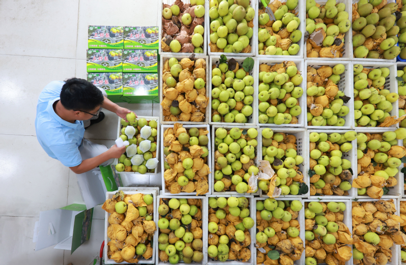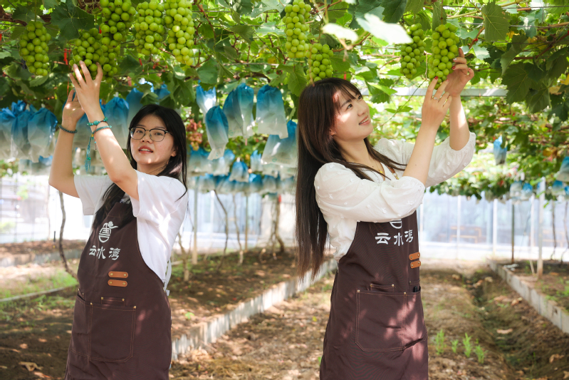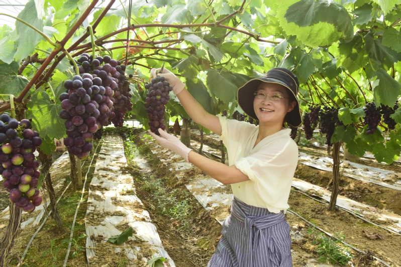 8月3日,在射陽(yáng)縣淮海農(nóng)場(chǎng)高效園區(qū)5畝連棟高架大棚葡萄園內(nèi),碩大成串的葡萄綴滿枝頭,就連空氣中也彌漫著沁人心脾、清新的水果味,經(jīng)過(guò)園區(qū)工人的精心培育,一串串綠色或黑色晶瑩的葡萄掛在藤架上,令人垂涎欲滴。入口品嘗,個(gè)個(gè)飽滿多汁,甜而不膩。慕名來(lái)采摘觀光的游客,在葡萄園內(nèi)一邊抬頭觀賞、一邊低頭采摘(如圖),幸福的滋味綻放在臉龐。在葡萄園里,剛剛用微信掃碼后的淮海居民吉長(zhǎng)明興奮地說(shuō):“我每年都要來(lái)到園區(qū)買幾箱葡萄,這里的葡萄不僅口感好,果也大,讓城里的人也來(lái)嘗嘗我們農(nóng)場(chǎng)獨(dú)特的‘土特產(chǎn)’?!睋?jù)他講,每年城里的親朋好友每到這個(gè)季節(jié),就要托他買幾箱葡萄帶到城里去。據(jù)了解,園內(nèi)種植品種“夏黑”和“陽(yáng)光玫瑰”等葡萄品種,畝產(chǎn)量可達(dá)4000斤上下。特別是其統(tǒng)一施用農(nóng)家肥、無(wú)公害防蟲防病、反光膜覆蓋、科學(xué)滴灌、疏果等措施,輔助于智能化的通風(fēng)調(diào)溫、噴淋調(diào)水和調(diào)節(jié)光照設(shè)施的開(kāi)展,合理調(diào)節(jié)土壤水分,降低田間溫、濕度,也減輕各類病蟲害的侵襲,讓葡萄按規(guī)定設(shè)計(jì)的要求進(jìn)行掛果,確保種出安全、優(yōu)質(zhì)的葡萄提供給消費(fèi)者?!拔覀兊钠咸衙拷锸蹆r(jià)在8元/斤,一畝地毛收入可達(dá)20000元?!眻@區(qū)負(fù)責(zé)人解進(jìn)空說(shuō),“是良好的品質(zhì)和采摘